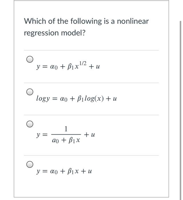 Solved Which of the following is a nonlinear regression | Chegg.com