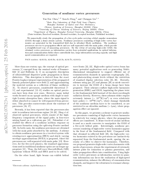 (PDF) Generation of Nonlinear Vortex Precursors