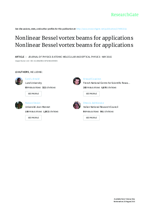 (PDF) Nonlinear Bessel vortex beams for applications