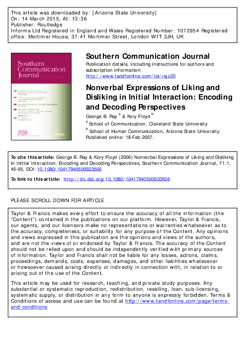 (PDF) Nonverbal Expressions of Liking and Disliking in Initial ...