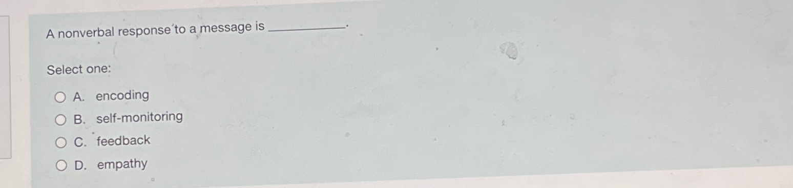 Solved A nonverbal response to a message isSelect one:A. | Chegg.com