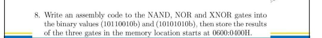 Solved 8. Write an assembly code to the NAND, NOR and XNOR | Chegg.com