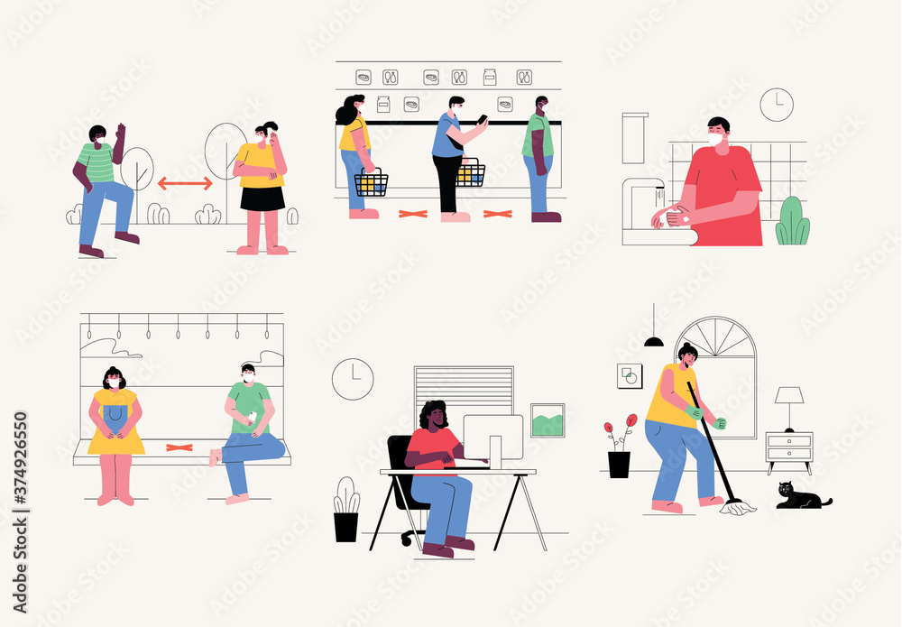New Normal Activity Graphics Illustration Set Stock Template | Adobe Stock