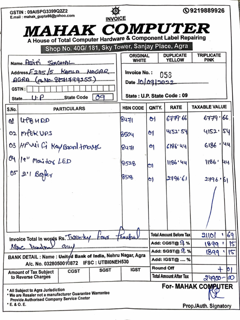 Computer Bill Ashok | PDF | Invoice | Payments
