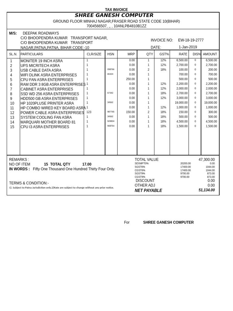COMPUTER BILL-0001 - Shree Maruti Offset