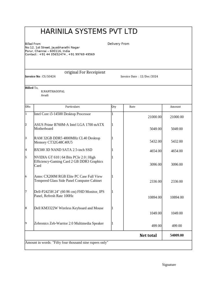 Harinila Systems PC Bill | PDF | Personal Computers | Intel