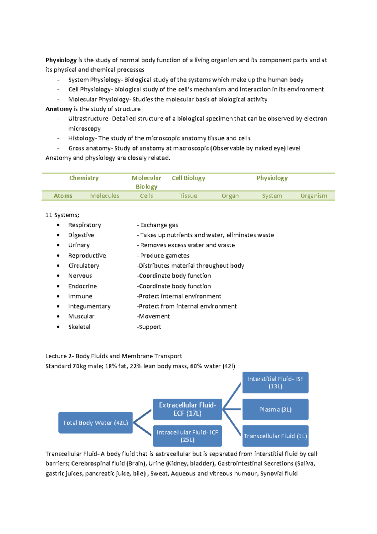 Notes Body Systems, Lectures 1-9 (37 pages) - Physiology is the study ...