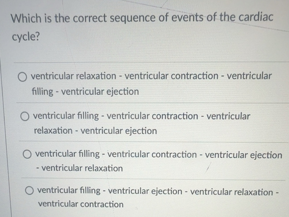 Solved: Which is the correct sequence of events of the cardiac cycle ...