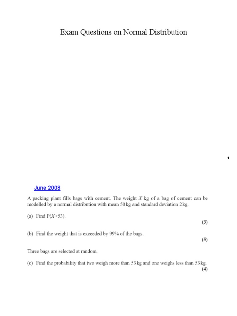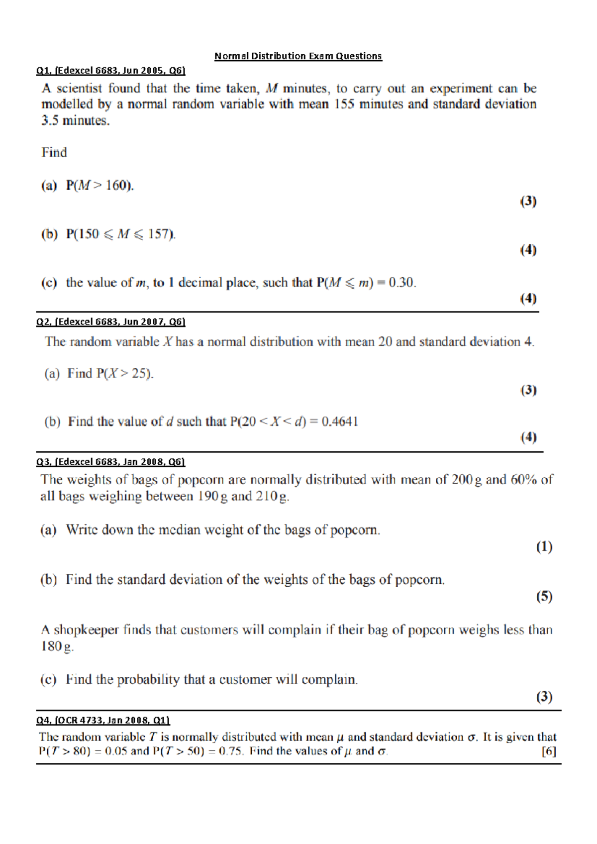 Exam Questions Normal Distribution | PDF | Normal Distribution ...