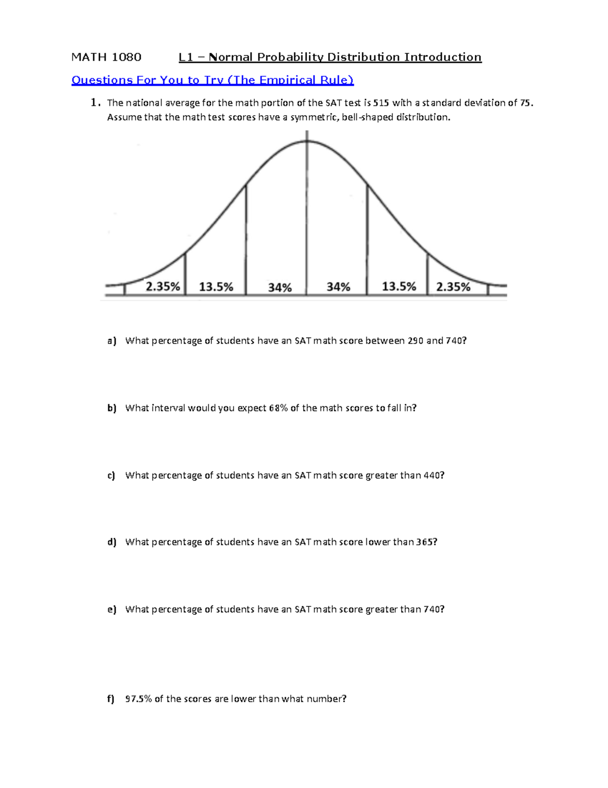 L1 - Normal Probability Distribution Intro - Questions For You to Try ...