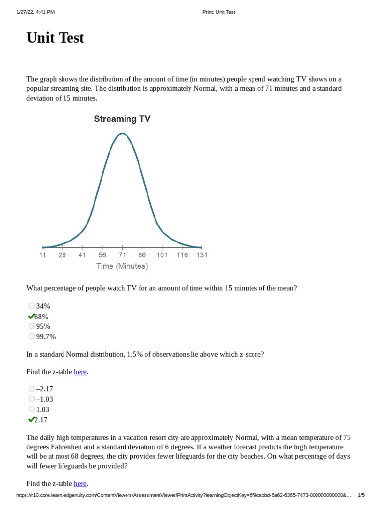 Understanding Normal Distribution: Practice Questions with | Course Hero