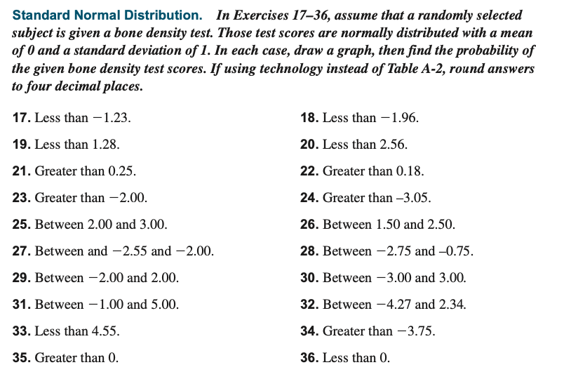 Solved Standard Normal Distribution. In Exercises 17-36, | Chegg.com