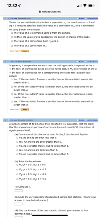 Solved 12:32 To use the normal distribution to test a | Chegg.com