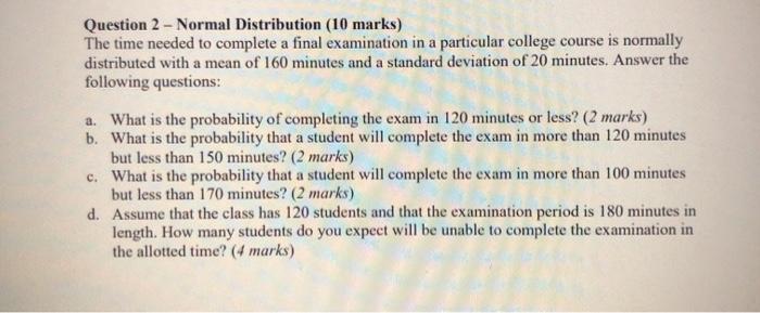 Solved Question 2 - Normal Distribution (10 marks) The time | Chegg.com