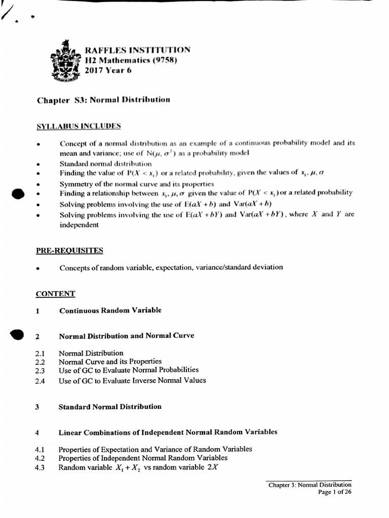 SOLUTION: Maths Normal distribution sums lecture notes PDF - Studypool