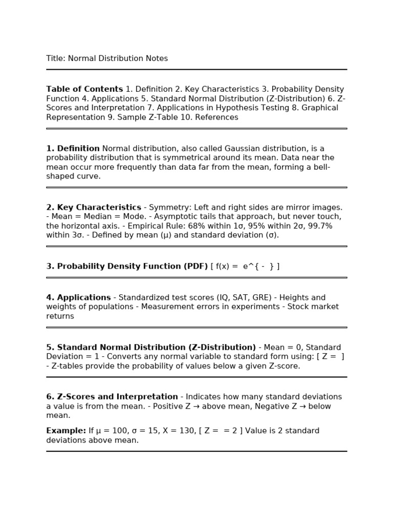 Normal Distribution Notes | PDF | Normal Distribution | Probability ...