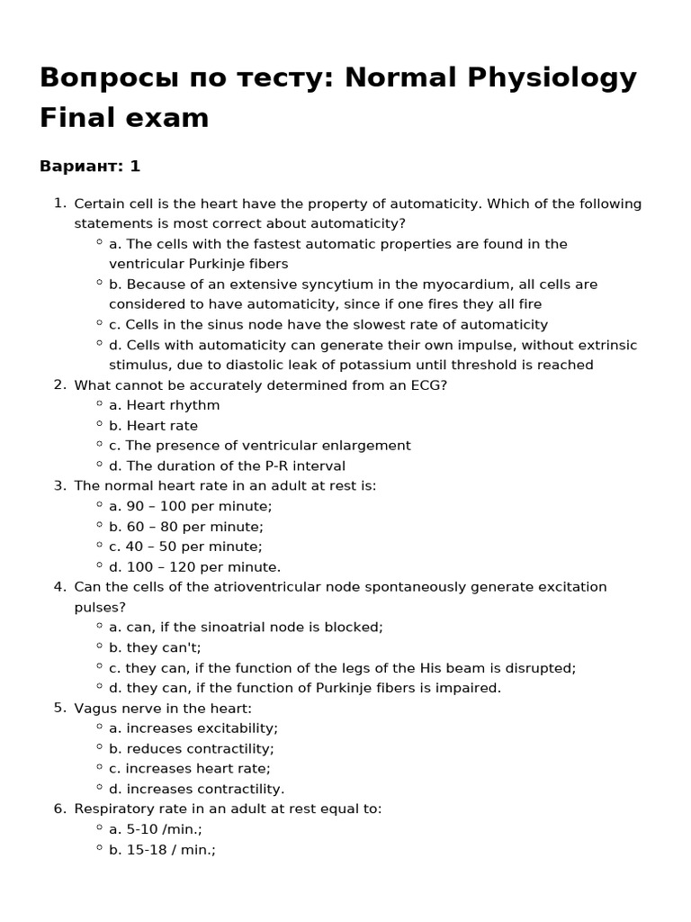 Normal Physiology Final Exam 100 | PDF | Heart | Atrium (Heart)