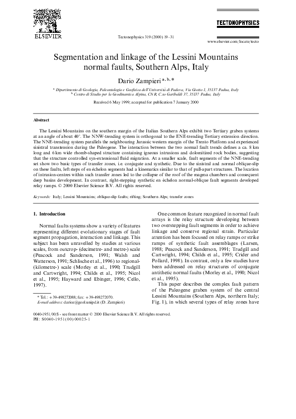 (PDF) Segmentation and linkage of the Lessini Mountains normal faults ...