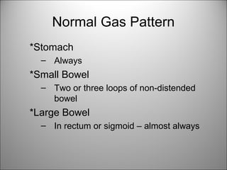 Normal bowel gas pattern Abdominal X-ray Abnormalities Normal reference ...