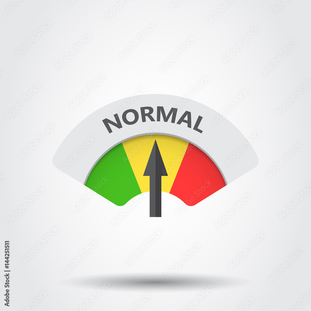 Normal level risk gauge vector icon. Normal fuel illustration on gray ...