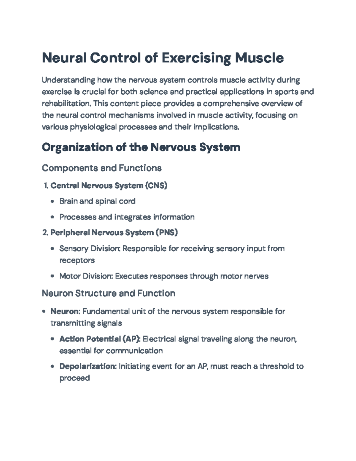 Neural Control Mechanisms in Exercising Muscle: Overview and ...