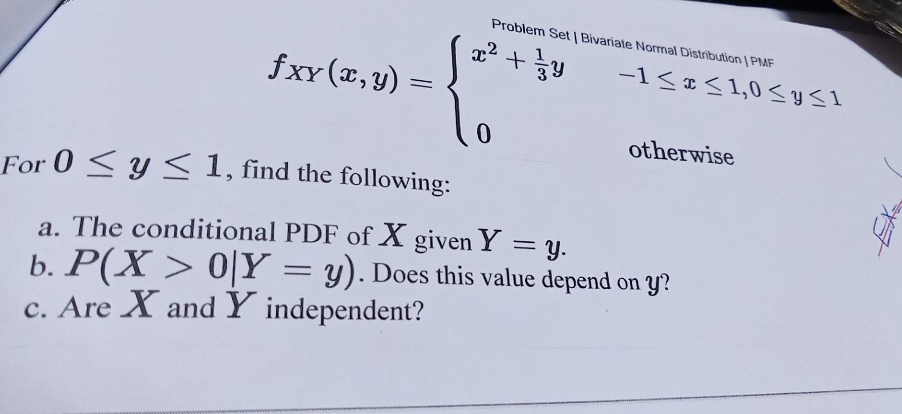 Solved Problem Set Bivariate Normal Distribution | PMF x2 + | Chegg.com