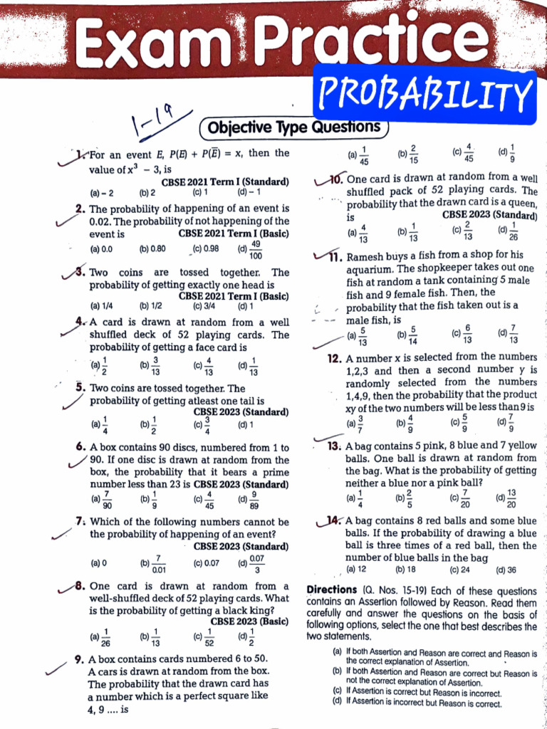 Practice Questions (Probability) '24 | PDF | Odds | Probability