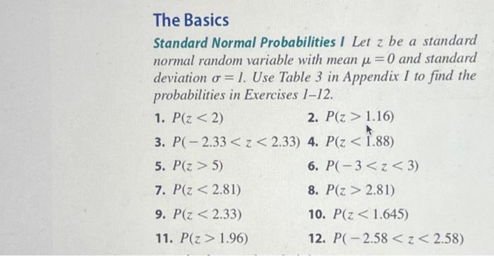 Solved The Basics Standard Normal Probabilities I Let z be a | Chegg.com
