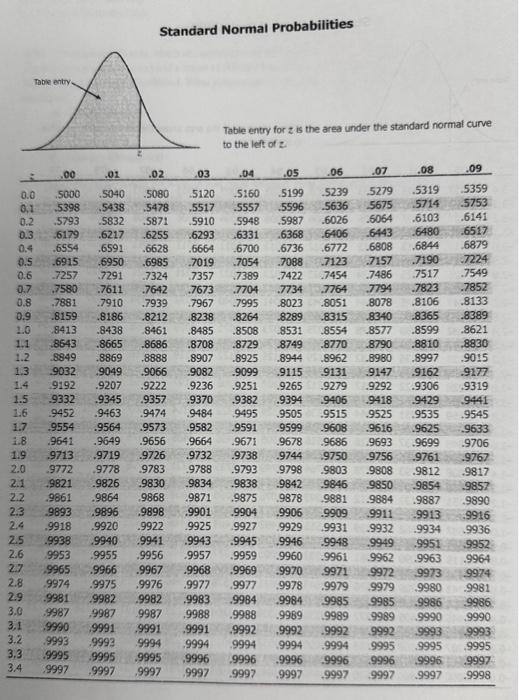 Solved Standard Normal Probabilities Table entry for z is | Chegg.com