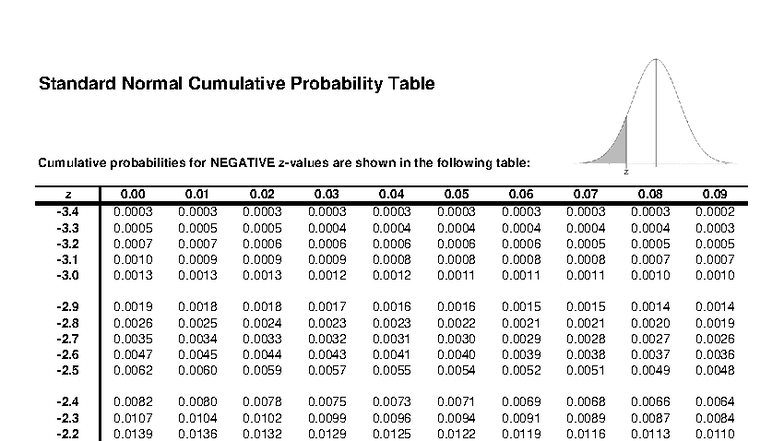 Standard Normal Cumulative Probability Table (Z Table) - Studocu