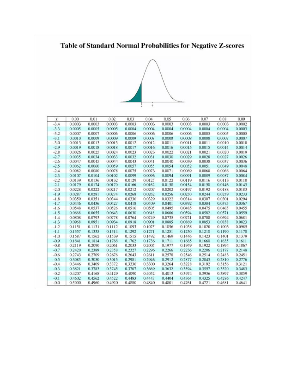 Std Normal Table - Table of Standard Normal Probabilities for Negative ...
