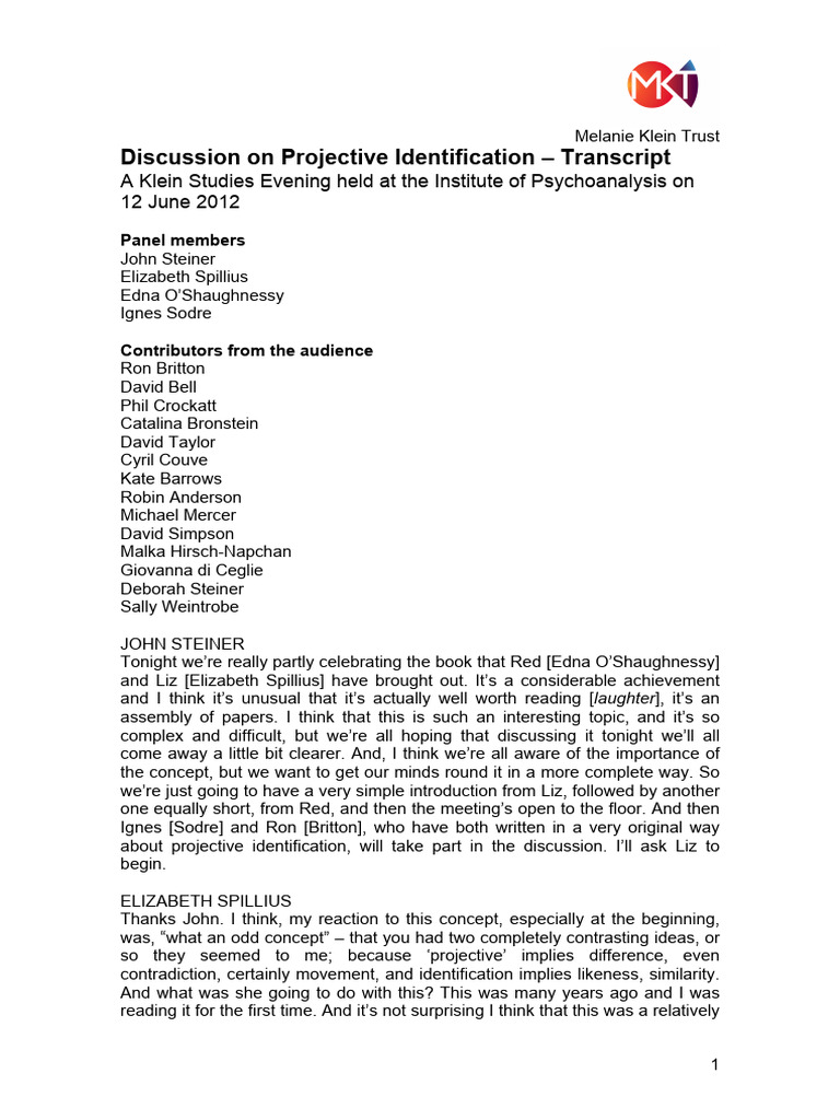 Projective Identification Transcript Final | PDF | Psychoanalysis ...