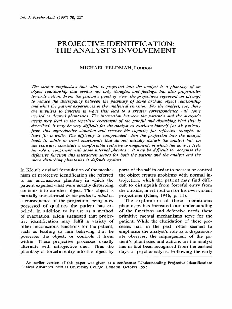 Projective Identification in the Clinical Setting: A Kleinian ...