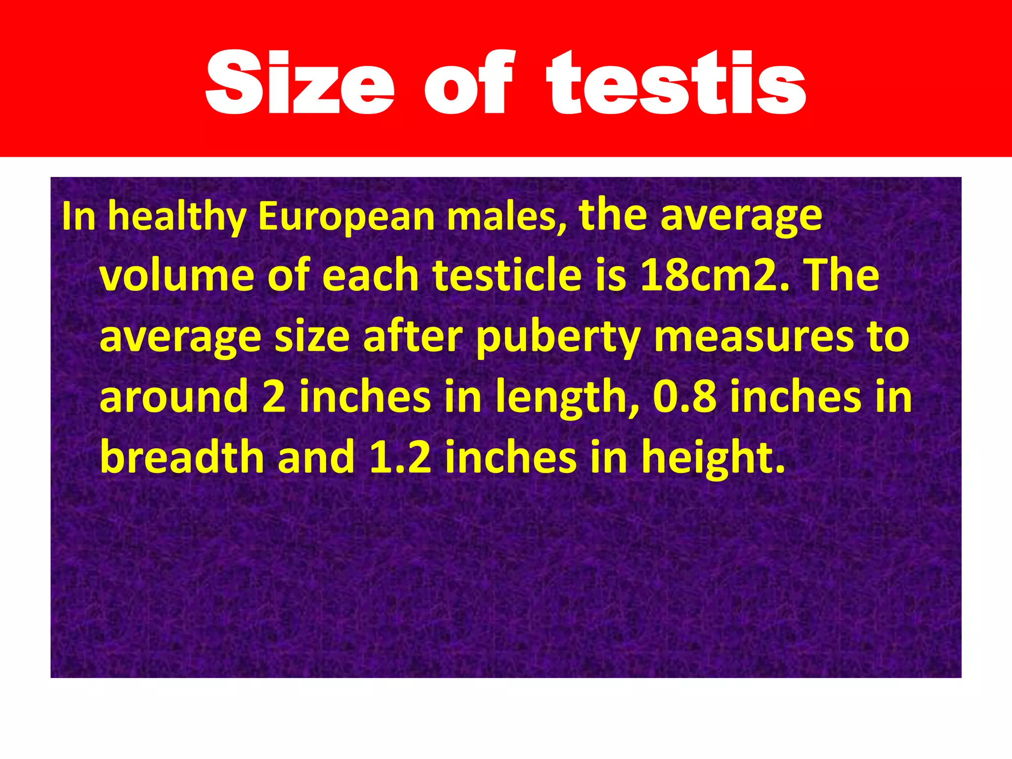 Normal testis, longitudinal view with standard measurements. | Download ...