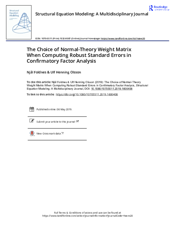 (PDF) The Choice of Normal-Theory Weight Matrix When Computing Robust ...