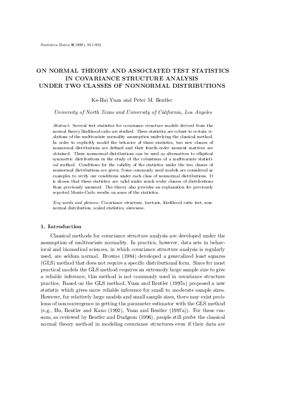 (PDF) On Normal Theory and Associated Test Statistics in Covariance ...