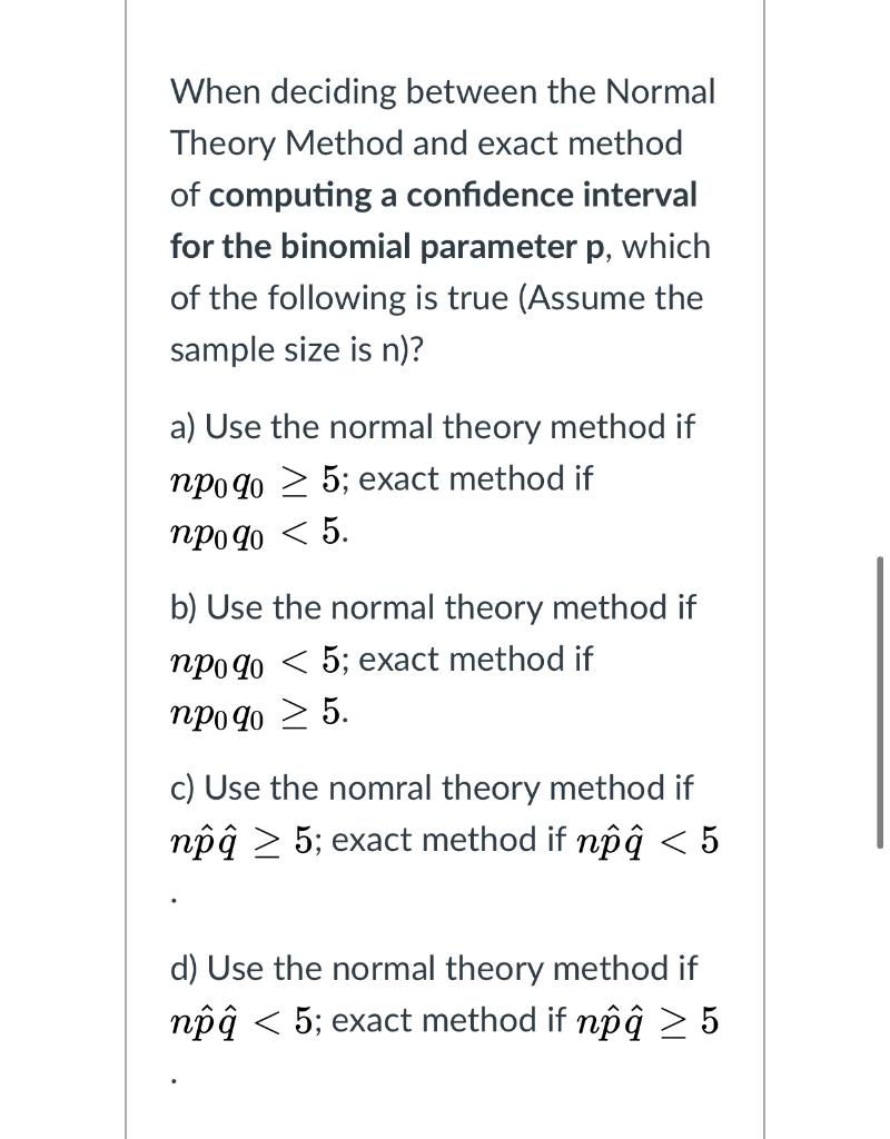 Solved When deciding between the Normal Theory Method and | Chegg.com