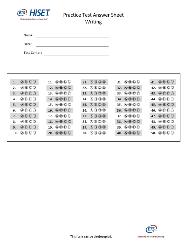 Practice Exam Answer Sheet Blank Writing | PDF