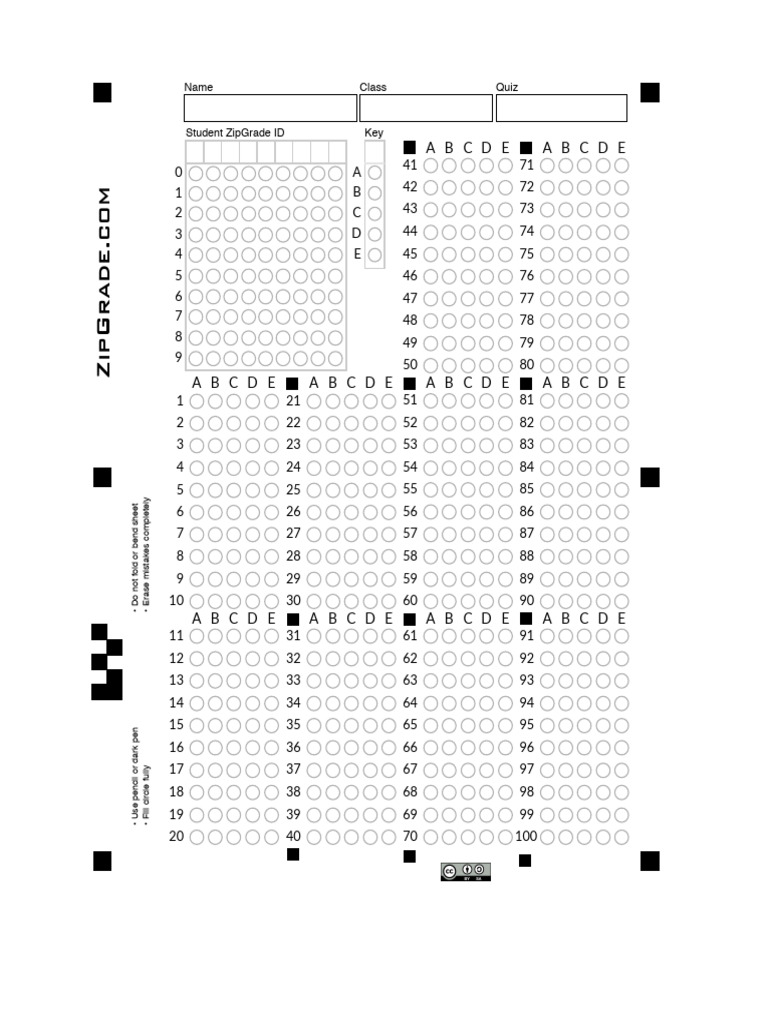 Blank Answer Sheet Template 1 100 - Ablebionics