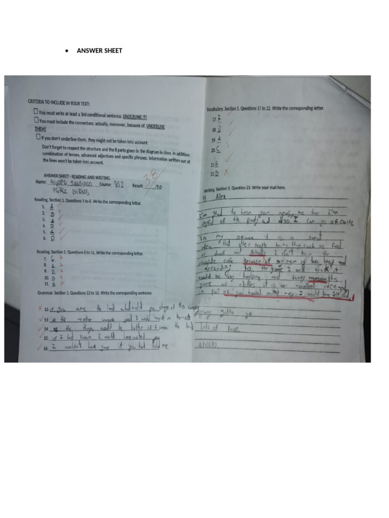 Answer Sheet+writing | PDF