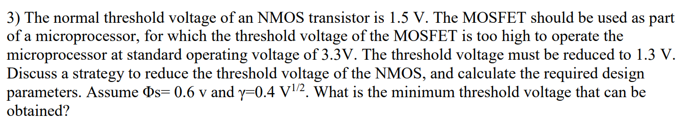 Solved 3) The normal threshold voltage of an NMOS transistor | Chegg.com
