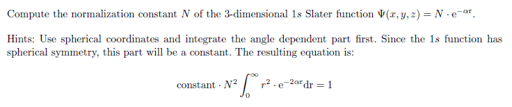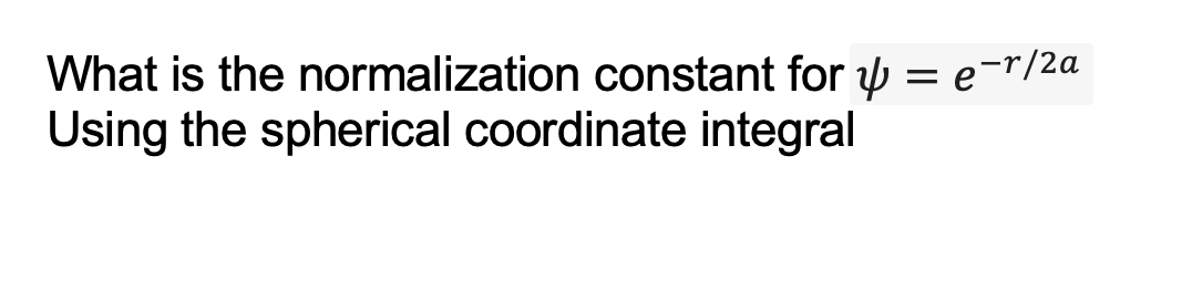 Solved What is the normalization constant for ψ=e−r/2a Using | Chegg.com