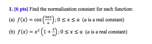 Solved 1. [6 pts] Find the normalization constant for each | Chegg.com