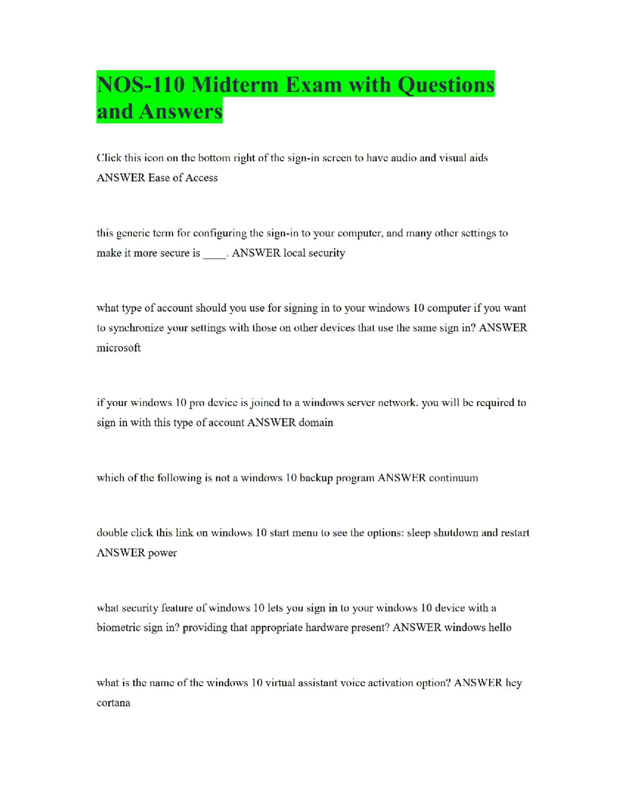 NOS-110 Midterm Exam with Questions and Answers | Exams Computer ...
