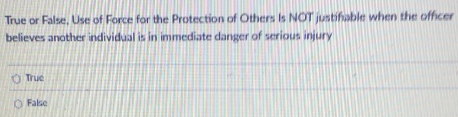 Solved: True or False, Use of Force for the Protection of Others Is NOT ...