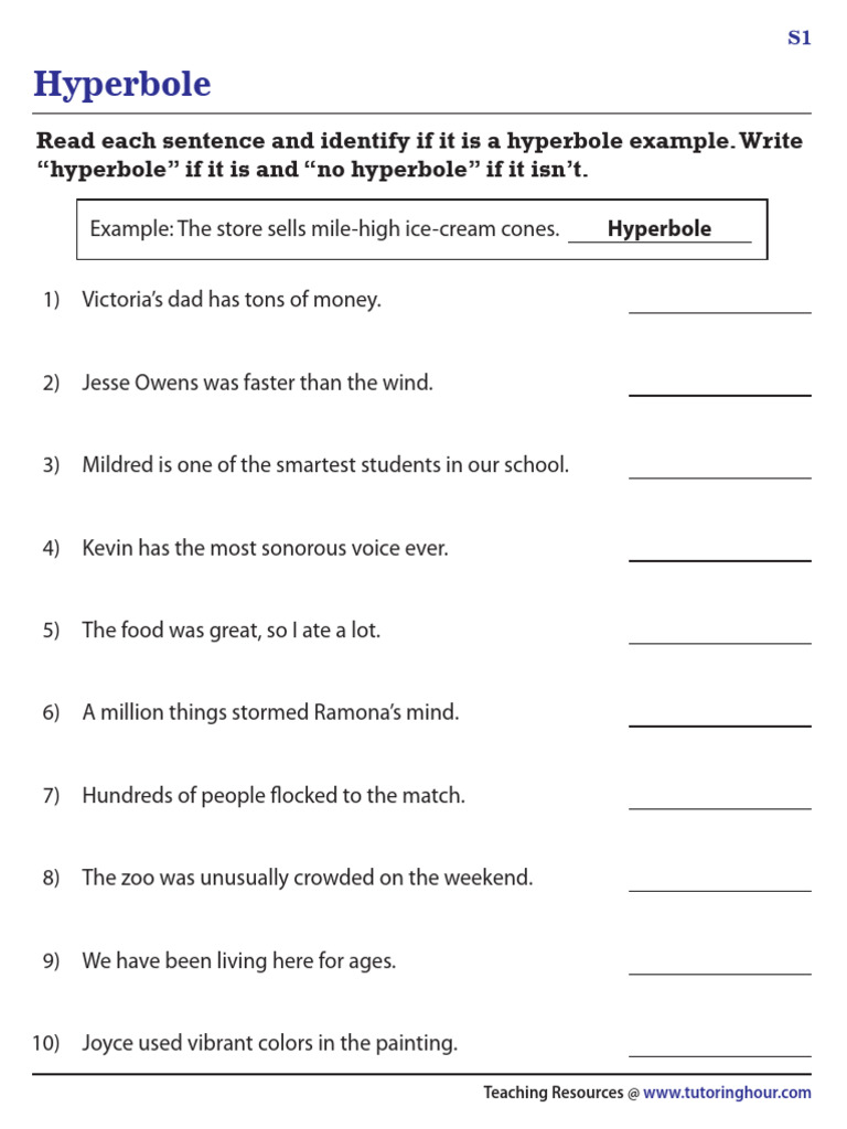 Hyperbole or No Hyperbole online exercise for - Worksheets Library