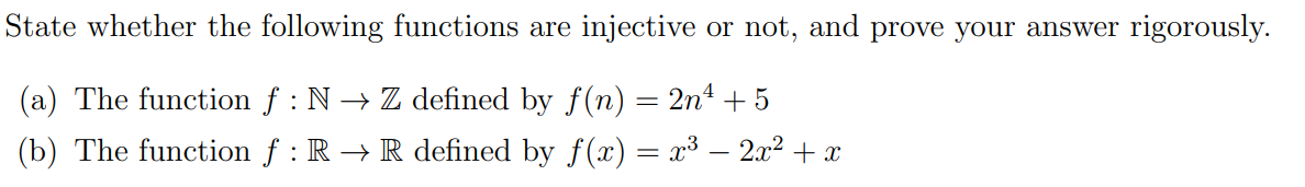 Solved (a) Find a function f:N→N which is injective but | Chegg.com