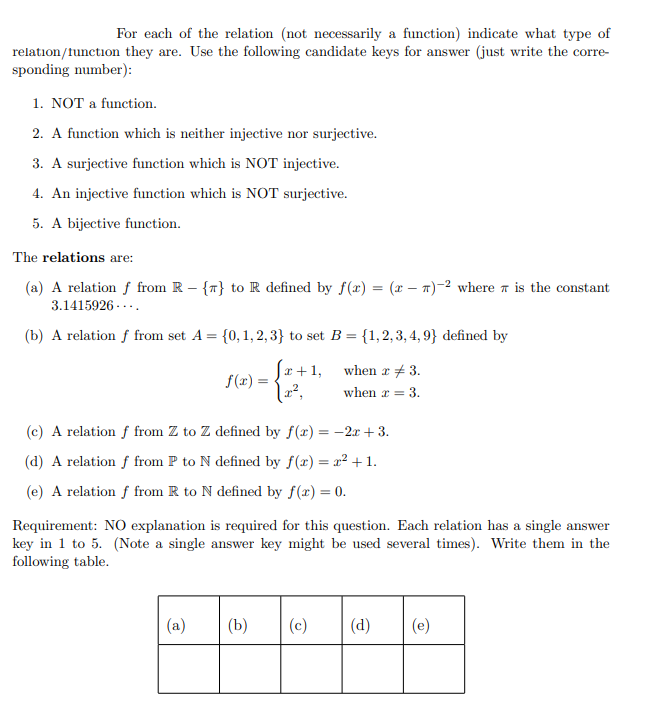 Solved For each of the relation (not necessarily a function) | Chegg.com
