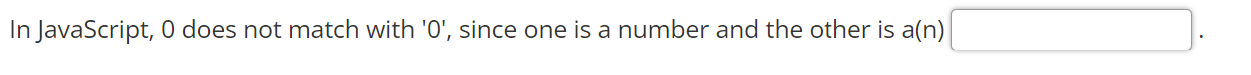 Solved In JavaScript, 0 does not match with ' 0 ', since one | Chegg.com