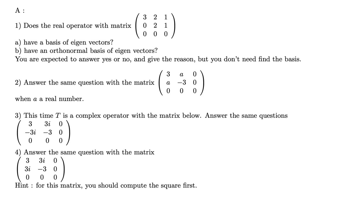 QUESTION 4:Two linear operators (matrices) are given | Chegg.com